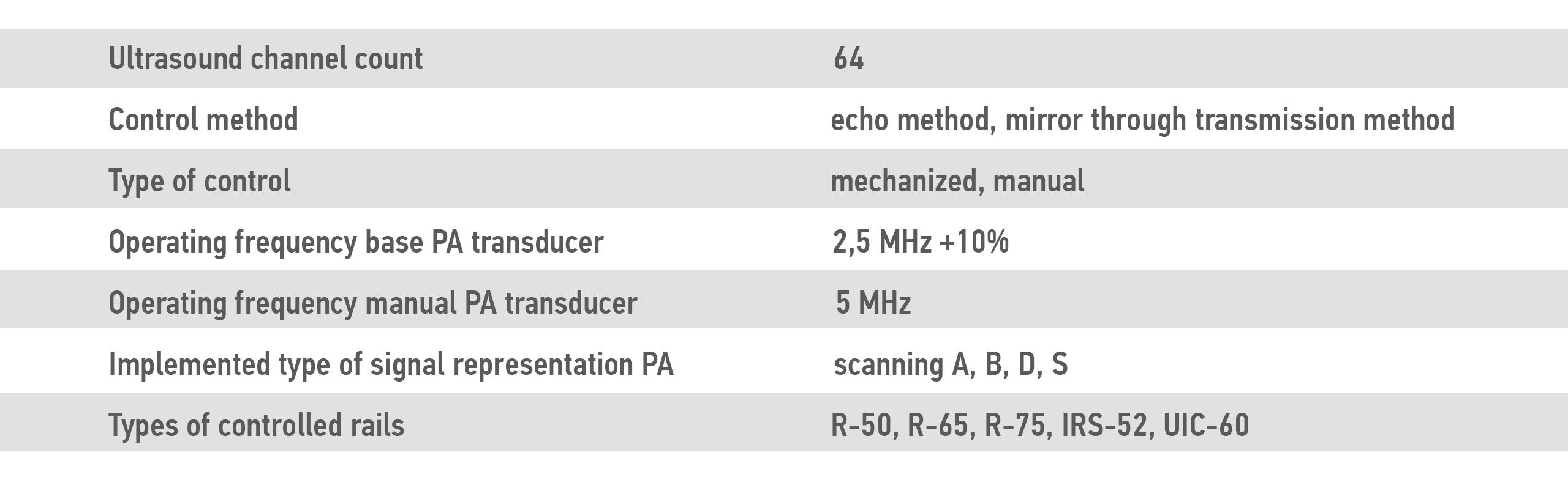 Full scanning over the entire cross-section of the welded joint with automatic determination of the defect coordinates and size. Scope of application: main and industrial railways, subway railways and rail welding plant.