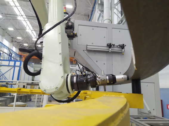 The laser scanning and flaw detection bench ROBOSCOP VTM-5000 HELICOPTERS is designed for the non-destructive testing of polymer-composite materials used in aircraft constructions: glider elements, helicopter blades, honeycomb panels It is also applicable in wind power engineering, small-sized shipbuilding, pipe fitting production, etc. All tooling (laser scanner, sensors) selection and change processes are automated.